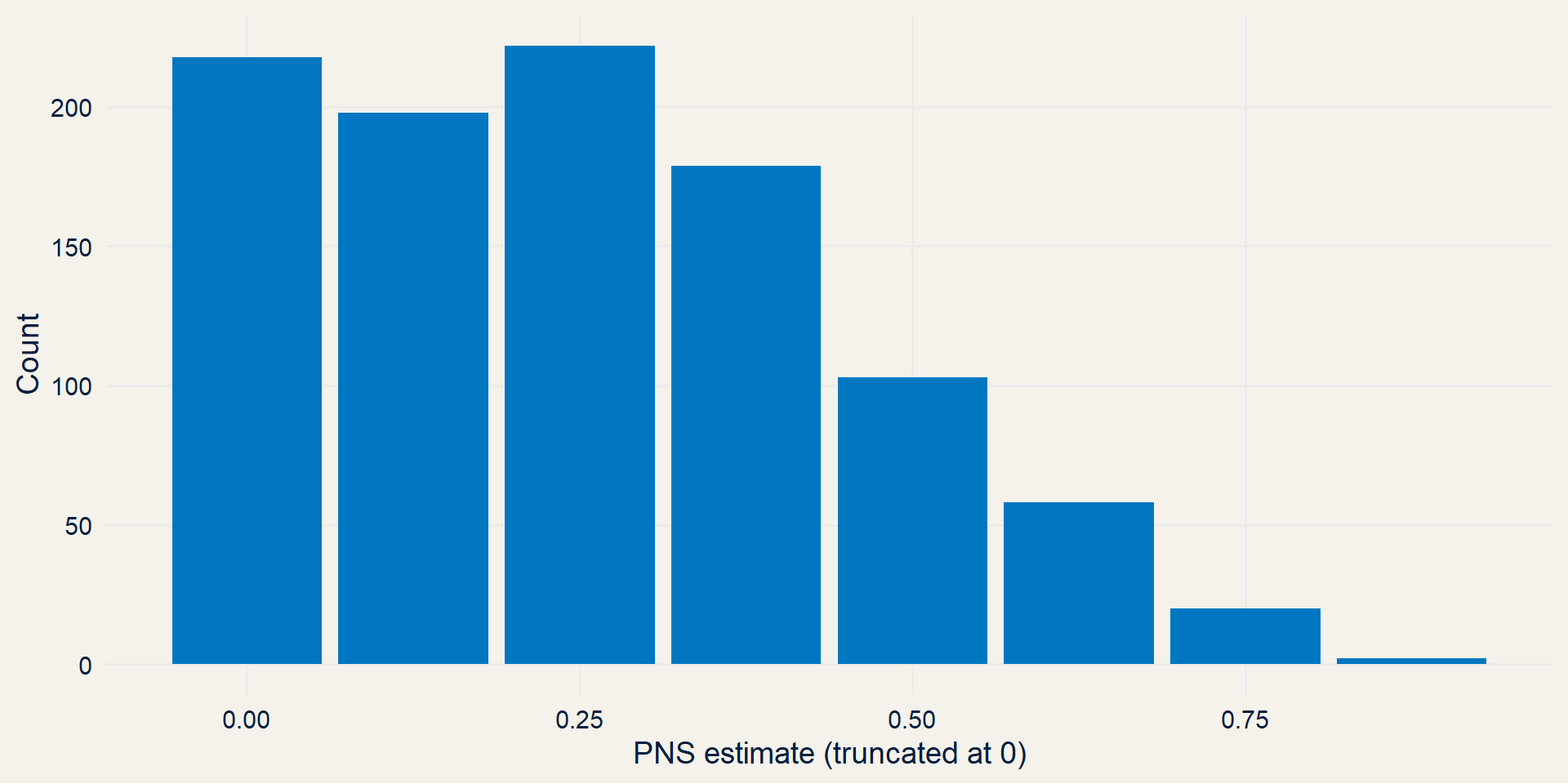 Our supervillain didn’t trust the estimated PNS=1/8, so he decided to use a Time-Machine and re-randomize the patients for treatment and control over and over again.